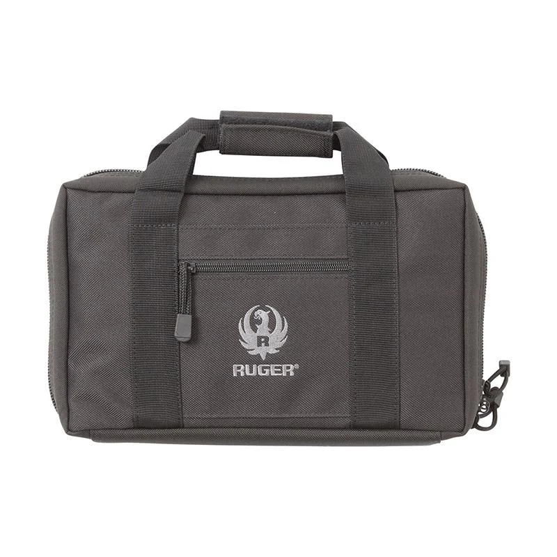 Made by Allen Company licensed by Ruger this double handgun case incorporates an internal zippered and padded handgun pouches for secure carry. Multiple internal loops accommodate knives tools mags or other accessories.