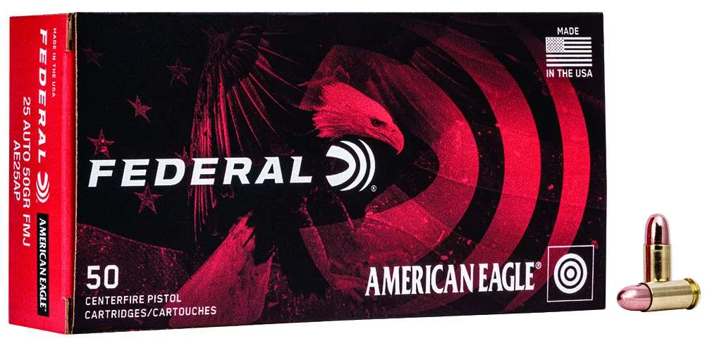 FEDERAL 25 AUTO 50GR FMJ 50 RD/BX 20 BX/CS
