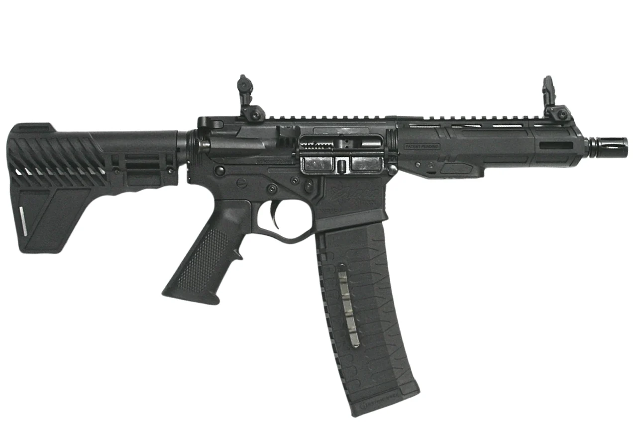 ATI ALPHA MAXX 5.56 PISTOL 7.5″ BLACK 7″ MLOK, REAR BLADE, F.U. SIGHTS, 1-60RD MAG
