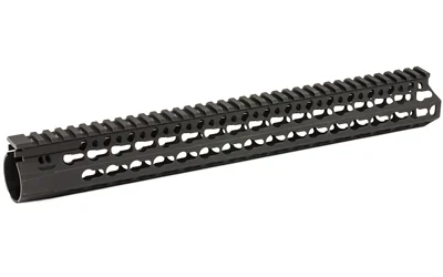 Bravo Company’s BCM KMR ALPHA 15″ KeyMod Free Float Handguard is manufactured from aluminum that is lightweight yet durable. It also features a proprietary patent pending mounting indexing and lock up system that mitigates 12:00 rail movement under heat generated from the barrel nut. Inner diameter is 1.3 inches and the outside is 1.5 inches flat to flat. The handguard flares forward (towards muzzle end) at the 3 and 9 O’clock positions approximately 1/4 inch and the actual length when measured to flare is 10.5 inches. The KeyMod interface system was developed by Eric Kincel (now the Director of BCMs’ product development team) to work in parallel with the current picatinny system. In many applications it will advance modularity past the current 1913 rail system. The BCM KMR Alpha also allows for a larger range of modularity offering 4 different offset mounting positions between traditional 3″ 6″ 9 and 12:00 positions. In the most basic of applications the KeyMod system allows for universal modularity between various manufacturers of accessories and accessory rails. A big win for the trigger puller.
