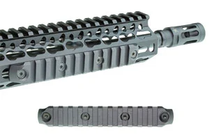 NOTE: NYLON/POLYMER PICATINNY RAIL SECTIONS ARE FOR NON-LOAD BEARING ACCESSORIES ONLY. ALUMINUM PICATINNY RAIL SECTIONS RECOMMENDED FOR LOAD BEARING. DO NOT EXCEED 20 IN/LBS WHEN SECURING KEYMOD FASTENERS ON POLYMER ACCESSORIES. ALUMINUM PICATINNY RAIL SECTIONS MAY BE TORQUED TO 30 IN/LBS