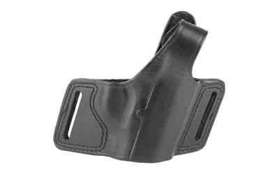 The Black Widow belt slide holster is an ultra hi-ride carry with a thumb snap closure. Dual belt slots provide stability and the open muzzle design offers fits for same pistol models with differing barrel lengths. Compact profile and widely spaced belt slots allow the pistol to ride close to the body for both comfort and concealability.