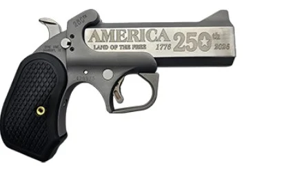 Bond Arms, MFG# BA250th-45/410, UPC: 855959002434, UOM: EA, America 250th Anniversary, .45 Colt/.410, 4.25″ Barrel, B6 Grip, Engraved, Stainless, Black, 2-rd, BOND, BONDHG25, BONDHGALL, HG25, HGALL
