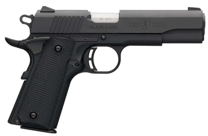 Browning’s 1911-380 is 15% smaller than the 45 ACP models and the ideal choice for concealed carry, home protection, shooters. It allows for more comfortable shooting, control, and accurate follow-up shots. The natural grip angle offers instinctual pointing, while a low bore axis provides excellent recoil control and shooting comfort. It has a flat profile, single-action trigger, longer slide and barrel, ambidextrous manual thumb and grip safety, and a steel magazine.