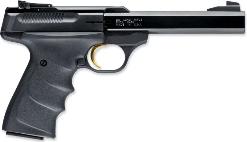 Browning’s Buck Mark rimfire pistol leads the industry in quality, reliability, accuracy and variety. It is constructed of a solid piece of aircraft-grade 7075 aluminum alloy, and then CNC machined to exacting tolerances. The crisp single-action trigger, hand reamed chamber, target crowned barrel and Pro Target adjustable sights mean the Buck Mark comes ready for fun straight from the box. Its slide features built-in recess and raised side panels for better grip along with a manual slide release.