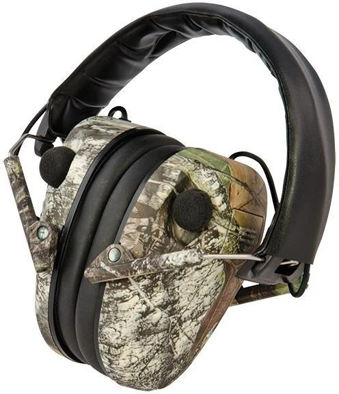 The low-profile E-Max hearing protection combines great circuitry with a low profile earcup that's ideal for shotgun shooters and action shooters. The two microphones in the E-Max amplify sounds below 85 decibels which amplifies normal communication range commands and environmental sounds. Above 85 decibels the microphones shut off for a split second to protect the shooter's hearing.Two microphones – one in each cup – give the user true stereo sound and allow the user to identify the directional source of a sound. Includes an integrated audio input jack allowing music to be played. Runs on 2 AAA batteries (not included). 23NRR