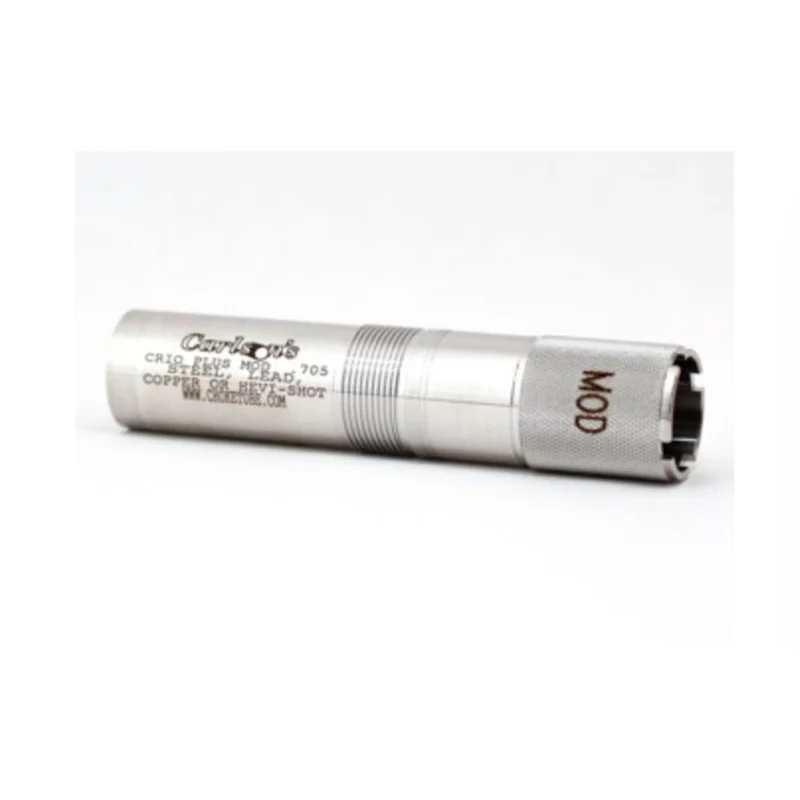 Crio/Crio Plus–Carlson's Sporting Clays Choke Tubes are made from 17-4 stainless and precision machined to produce a choke tube that patterns better than standard choke tubes. These choke tubes feature a 25% larger parallel section in the choke thus throwing more consistent patterns than conventional choke tubes. Each choke tube is knurled on the end to allow for quick and easy removal. Each choke tube has the constriction laser marked on the end for easy reference. These choke tubes are backed by Carlson's lifetime warranty.