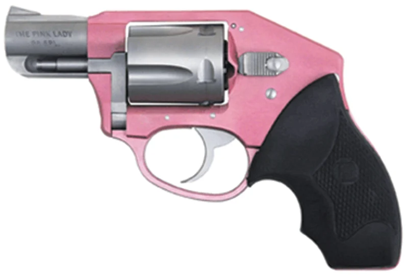 Charter, MFG# 53851, UPC: 678958538519, UOM: EA, Off Duty Pink Lady, 38 Special +P, 2″ Barrel, Fixed Sights, DAO, Pink/Stainless, 5-round, CHAR, CHARHG20, CHARHGALL, HG20, HGALL