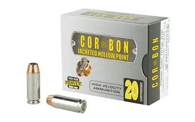COR(R)BON JHP(TM) is the traditional hollow point that put COR(R)BON on the map. JHP(TM) is proven ammunition that provides reliable penetration and expansion. The internal and external serrations and soft lead cavity provide stopping power and an average penetration of 9 to 15 inches in ballistic gelatin.