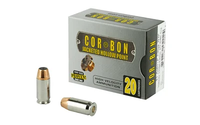 COR(R)BON JHP(TM) is the traditional hollow point that put COR(R)BON on the map. JHP(TM) is proven ammunition that provides reliable penetration and expansion. The internal and external serrations and soft lead cavity provide stopping power and an average penetration of 9 to 15 inches in ballistic gelatin.
