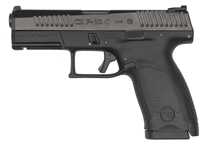 CZ-USA, MFG# 91531, UPC: 806703915319, UOM: EA, CZ P-10 Compact, 9mm, 4.02″ Barrel, Fixed Sights, Black Polymer, Rev Mag Catch, 15-rd, CZA, CZAHG10, CZAHGALL, HG10, HGALL