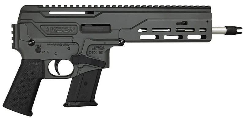 Diamondback, MFG# DB1614L051, UPC: 810035752702, UOM: EA, DBX57 Black Gold Pistol, 5.7×28, 8″ DBX Muzzle Device, M-Lok Rail,Dark Gray,1-20Rd., DIAM, DIAMHG10, DIAMHGALL, HG10, HGALL, Case: 1