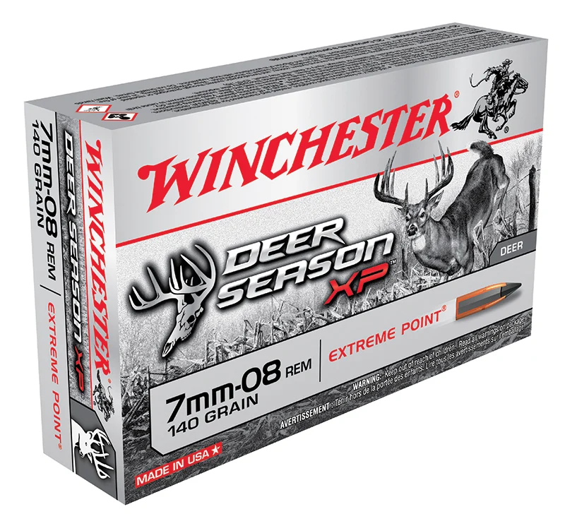 Winchester Ammunition, MFG# X708DS, UPC: 020892222656, UOM: BOX, Deer Season XP, 7mm-08, 140 grain, Extreme Point, 20/box, WINC, WINCAM30, WINCAMALL, AM30, AMALL, Case: 10