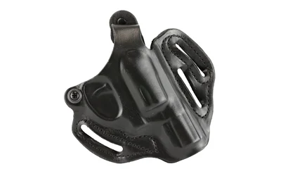 The firearm rides high and is presented at an optimum draw angle. Its thumb break and exact molding, together with a tension device, allows for a secure and highly concealable carry. Belt slots are 1 3/4″ wide. Some models with two belt slots and without tension device.