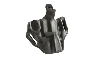 The firearm rides high and is presented at an optimum draw angle. Its thumb break and exact molding, together with a tension device, allows for a secure and highly concealable carry. Belt slots are 1 3/4″ wide. Some models with two belt slots and without tension device.