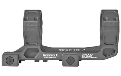 The AR-15/M4 Super Precision series of scope mounts are optimized for use with an AR-15/M4 upper. The mounting surface spans 7 picatinny sections and utilizes 4 shear lugs. These mounts use Geissele’s update of the classic nut and bolt method for clamping the mount to the picatinny rail, which is the most secure method of attaching your scope to your weapon. Each nut and bolt combination provides 1″400 pounds of clamping force, much more than any lever mounting arrangement.