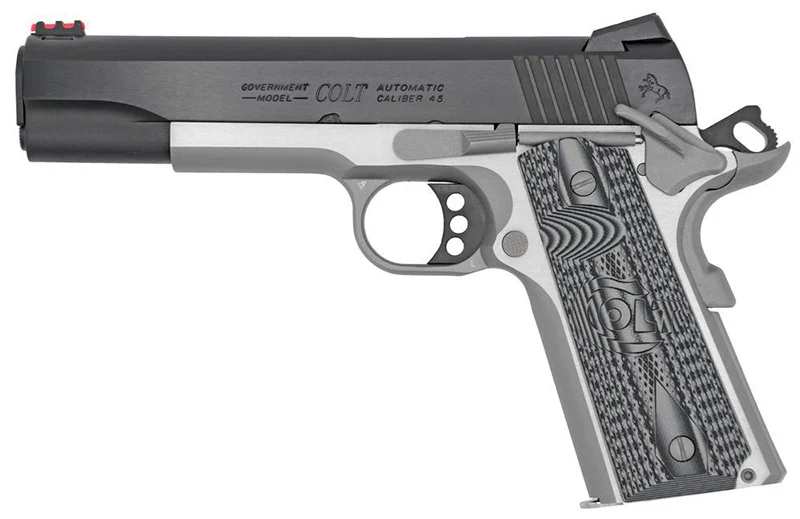 Colt, MFG# O1070CCS-TT, UPC: 098289111548, UOM: EA, Competition, 45 ACP, 5″ Barrel, Novak Adj FO Sights, Blued/Stainless, G10 Grips, 8-rd, COLT, COLTHG10, COLTHGALL, HG10, HGALL