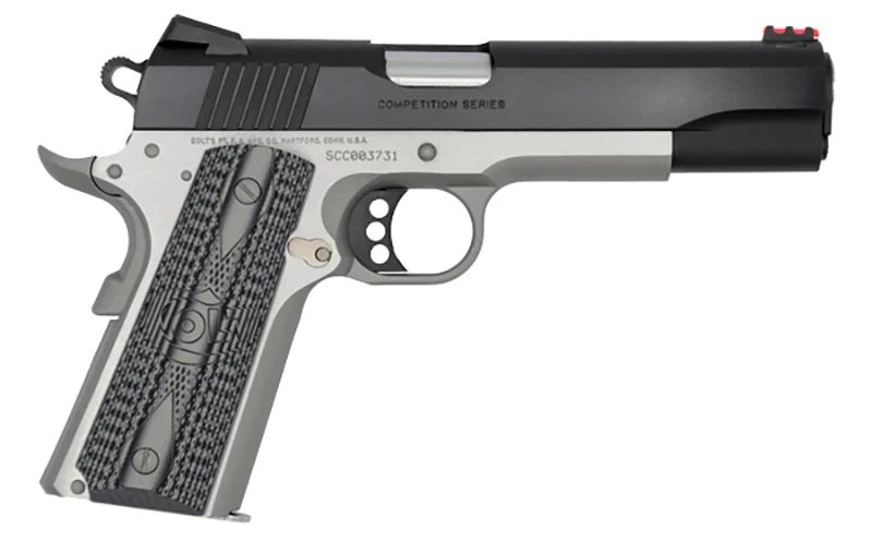 Colt, MFG# O1070CCP-TT, UPC: 098289112316, UOM: EA, Competition, 45 ACP, 5″ Novak Adj FO Sights, SS/Blue Titanium, G10 Grips, 8-rd, COLT, COLTHG10, COLTHGALL, HG10, HGALL