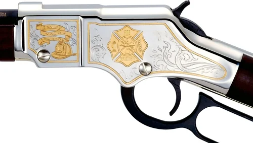 -Right side: Firefighter rescuing a child and the text “In Tribute to America’s Bravest” with 24K gold plating