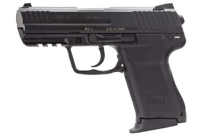 Heckler & Koch, MFG# 81001112, UPC: 642230269330, UOM: EA, HK45C V7, .45 ACP, 3.94″ Barrel, Picatinny, Front Night Sights, Blued, (2) 8-rd, HKUS, HKUSHG10, HKUSHGALL, HG10, HGALL