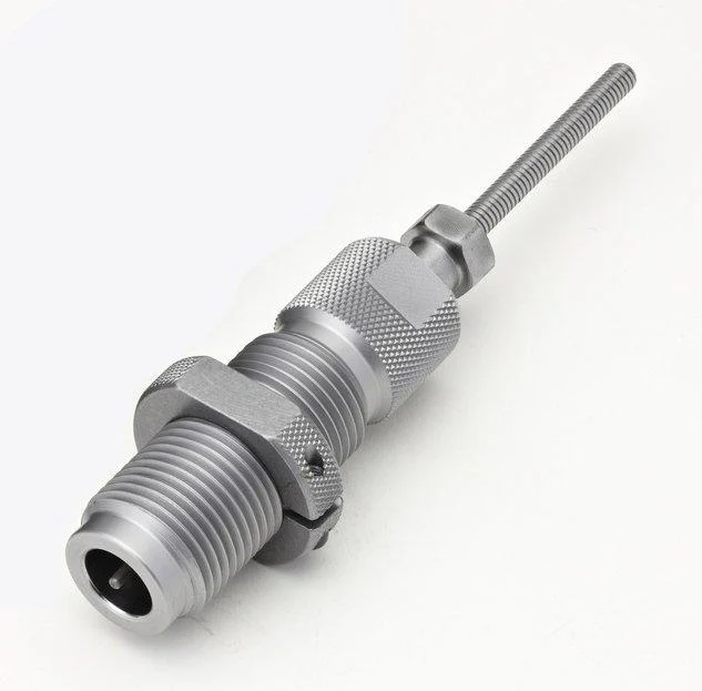 Hornady Custom-Grade New Dimension Dies are one of the most advanced reloading dies available today. The Zip Spindle design features a series of light threads cut on the spindle and spindle collet. This design eliminates spindle slippage and takes the knuckle busting out of tightening the spindle lock while making spindle adjustments a snap. Built-in crimper gives the option of crimping without the need for an extra crimp die. Guaranteed never to break or wear out for from normal use.