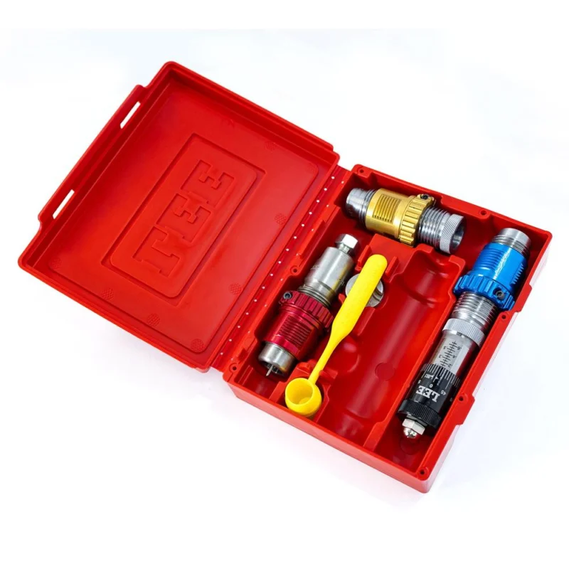 Lee 223 Breech Lock 3-Die Set includes colored quick change bushings for easy die identification Full Length Sizing Die Micrometer Bullet Seating Die Factory Crimp Die Universal Shell Holder powder measure and instructions with load data. Select this die set if you are reloading mixed range brass and have the Breech Lock Quick Change feature on your reloading press.