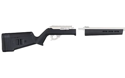 The Magpul Hunter X-22 Takedown chassis is an ergonomic, full-featured stock specifically designed for the Ruger 10/22 Takedown series of rifles. Made from high quality reinforced polymer, the Hunter X-22 Takedown features an ergonomic grip, adjustable length of pull and comb height to fit a wide variety of shooters, multiple sling mounting options, a non-slip rubber butt-pad, and M-LOK slots for accessory attachment. The Hunter X-22 Takedown fits standard Ruger 10/22 Takedown .22 LR pattern rifles with no gunsmithing, and a reversible barrel tray ensures proper fit with factory pencil profile as well as heavy bull barrels. Made in U.S.A.