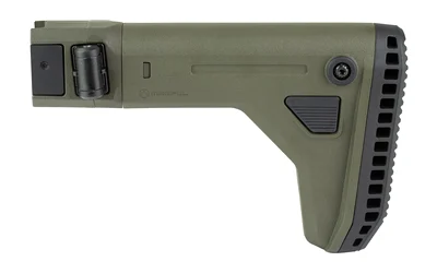 The Magpul UCS (Universal Carbine Stock) is designed to be the ideal supplement to the vast array of firearms utilizing a vertical M1913 Picatinny rail on the rear of the receiver for stock fitment. To accommodate the wide variety of charging handles styles, ejection port locations, and control locations, the UCS features a reversible hinge for left and right folding configurations, and five degrees of drop for clearance.