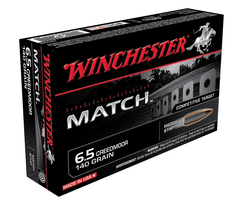 Winchester Ammunition, MFG# S65CM, UPC: 020892220713, UOM: BOX, Match, 6.5 Creedmoor, 140 grain, Boat Tail Hollow Point, 20/box, WINC, WINCAM30, WINCAMALL, AM30, AMALL, Case: 10