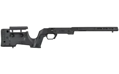 The XRS Chassis is designed for shooters that want the fit and feel of a traditional shaped rifle stock with the benefits of a modern precision rifle chassis system. Each XRS Chassis is constructed from a full-length CNC machined core of 6061 aircraft grade aluminum wearing high strength textured polymer panels for insulation from the elements. The precision aluminum V-block bedding system ensures fit and function to maximize the accuracy of any rifle action. The XRS Chassis features a replaceable over molded and textured grip system, with both an angled grip and a vertical grip included in box. The XRS Chassis is the most advanced and configurable crossover stock on the market and is the ideal performance upgrade for any factory rifle or foundation for a custom rifle build. Weighing in at 3.9lbs (depending on inlet), the XRS is ideal for both hunting or target rifles. The XRS features adjustable length of pull via spacers from 13.25″ to 15+, and a quick adjust cheek piece to adjust for scope height over bore. The XRS accepts standard AICS pattern magazines and has an easy to manipulate ambidextrous magazine latch. The generous 12″ long Forend comes with M-LOK slots built in for accessory mounting and attachment of ARCA or picatinny rails.