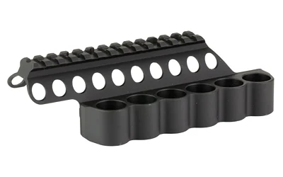 SureShell shotshell carriers for the Beretta 1301 feature mounting brackets with integral top Picatinny sight rails. Using the top mounting screw holes found on the Beretta 1301 shotguns, the SureShell shotshell carriers are thus slung on the left side of the receiver, securely fastened at the top. No other shell carrier mounting method is as secure or looks as good. The Picatinny rails are machined from aircraft grade 6061-T6 aluminum, which are mil-spec hard anodized and provide an extremely durable non-glare matte finish. The basic saddle rail design provides a robust mounting platform suitable for mounting a variety of optical sights, while a second version, which is nearly identical to the basic version, also includes a Mesa Tactical four, six, or eight shell SureShell shotshell carrier mounted on the left side of the receiver. Both versions are manufactured in compliance with MIL-STD-1913 Picatinny specifications, and no gunsmithing is required for installation.