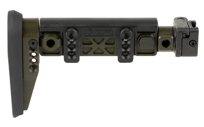The Midwest Industries Alpha Series Folding Stock brings the AK platform into the 21st century. Increasing versatility by featuring, an adjustable polymer cheek piece, 5 position locking beam, 3 QD sling attachments, and reversable design for left-handed shooters. This modular stock can be configured to fold either right or left. Compatible with firearms that include 1913 rail adapter. Made in the U.S.A.