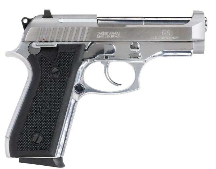 Taurus, MFG# 1-58149, UPC: 725327636915, UOM: EA, Model 58, .380 ACP, 4″ Barrel, Adjustable Sights, Stainless, Black, (2) 15-rd, TAUR, TAURHG10, TAURHGALL, HG10, HGALL