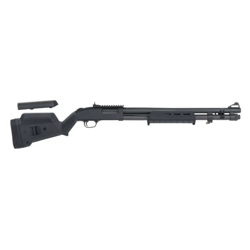 The Mossberg 590A1 is the most durable of their pump action shotguns meeting MIL-SPEC 3443G with its heavy-walled barrel metal trigger guard and safety clean out mag tube and Parkerized finish. Its hearty construction and proven endurance make it a prime choice for home defense applications.