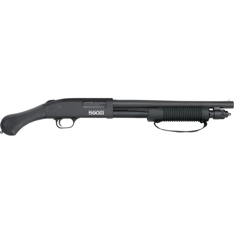 For the ultimate in shooting flexibility the all-new 590S Series cycles 1.75″ 2.75″ or 3″ shells. Pick one shotshell length for specific shooting needs or simultaneously load any combination of those shell lengths. The choice is yours with the 590S. Features standard Mossberg Pump-Action Features: Dual extractors twin action bars positive steel-to-steel lockup and anti-jam elevator provide smooth operation. Other features include top-mounted ambidextrous safety matte blue metal finish magazine clean-out tube with cap and a logo-engraved receiver.