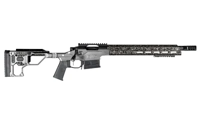 The Modern Precision Rifle is an ultra-lightweight chassis rifle designed to break with tradition. Beyond the folding stock the complete package is well equipped with a target contour Christensen Arms carbon fiber barrel, carbon fiber comb, free-floating carbon fiber handguard, and 20 MOA rail. The action and stainless steel side-baffle muzzle brake are finished in Black Nitride for a sleek look. The Modern Precision Rifle weighs in starting at 6.9 pounds and is backed by the Christensen Arms Sub-MOA Guarantee.