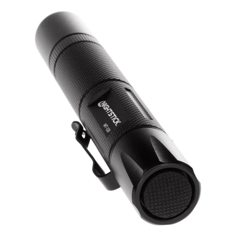 This 2 AA Mini-TAC light uses a deep parabolic reflector creating a tight long-throw beam for distance illumination. With a water-resistant design it is constructed from aircraft-grade 6061-T6 aluminum with a Type II hard anodized finish. The tail switch provides momentary or constant-on functionality. The light comes with a removable pocket clip and a removable wrist lanyard. The MT-120 is powered by two AA batteries (included).