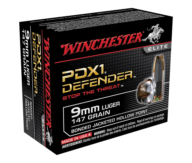 Winchester Ammunition, MFG# S9MMPDB1, UPC: 020892217836, UOM: BOX, PDX1 Defender, 9mm Luger, 147 grain, Bonded Jacketed Hollow Point, 20/box, WINC, WINCAM40, WINCAMALL, AM40, AMALL, Case: 10