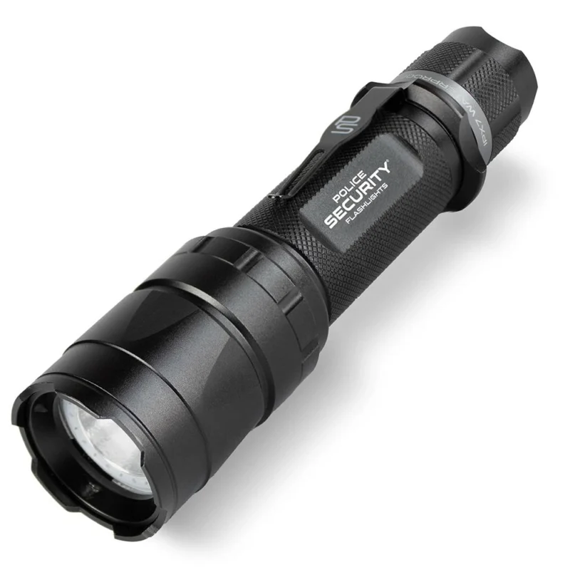 Police Security’s Trac Tact RX is the ultimate multi-use rechargeable tactical flashlight. Precision-crafted from architectural-grade aluminum this powerhouse 1500 lumen flashlight operates on 5 modes including a night vision-friendly red light and a 395 nM UV light. The included 21700 Rechargeable Battery ensures lasting power providing up to 1500 lumens for up to 8 hours across different modes. With its IPX7 waterproof rating the Trac Tact RX is built to withstand the elements and is backed by Police Security's Lifetime Warranty for ultimate peace of mind.