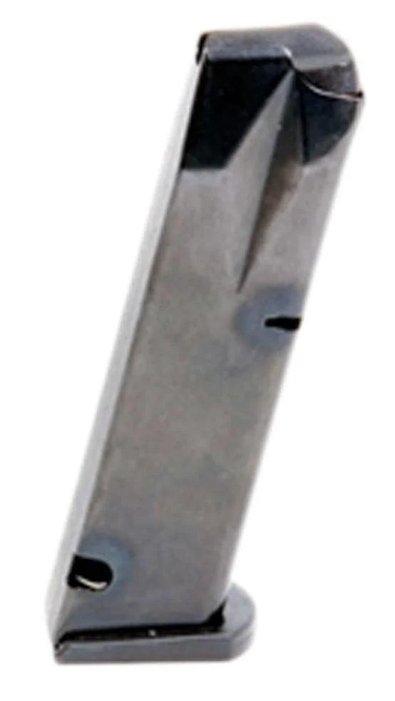 A 13-rd magazine for the 84 pistol in .380acp. Constructed from heat-treated blued-steel with a follower lock-plate and base-plate molded from a proprietary DuPont® Zytel based black polymer; and using a spring wound from Chrome-silicon wire and heat-treated for strength and reliability.