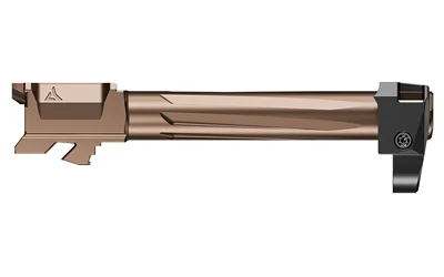 The Radian AFTERBURNER + RAMJET combo offers exceptional recoil reduction and match-grade accuracy in a concealed carry package. The threadless barrel design allows for easy installation and removal for cleaning. The AFTERBURNER compensator is machined from stainless steel, and the RAMJET barrel is made from hardened 416R SS; both feature a Radianite coating. This combination ensures low friction, high hardness, and excellent corrosion resistance, enhancing durability and preventing erosion from muzzle blast. Angled front faces on the AFTERBURNER help with holstering.