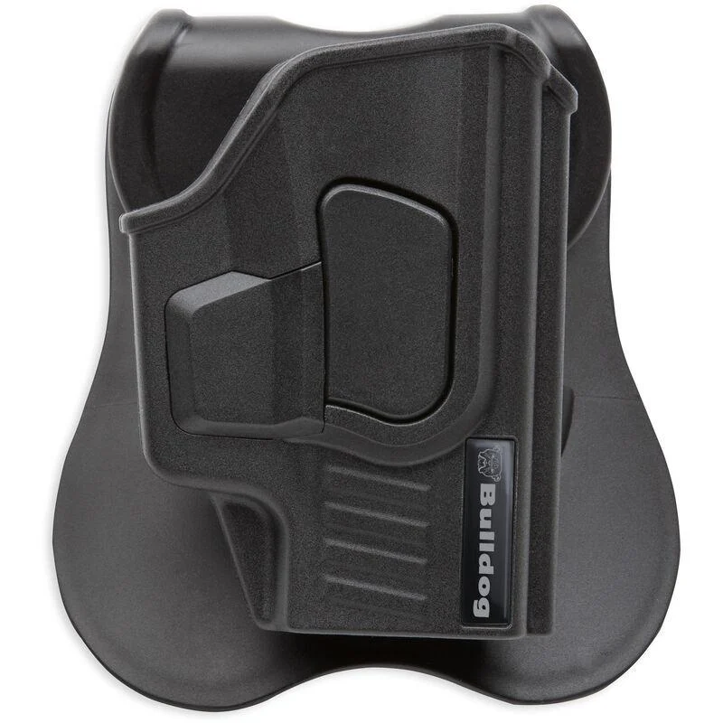 Bulldog's Rapid Release Polymer holster series is made of durable high-tech polymer materials. The new updated gun-specific design is fully adjustable to multiple draw positions. The specially designed locking mechanism provides safe and secure "Level II" retention while offering a one finger "quick draw" release.