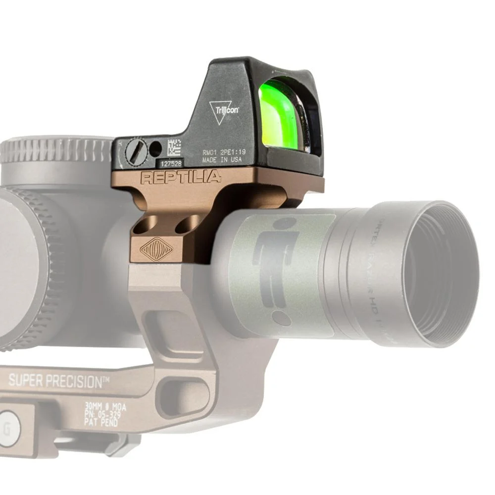The Reptilia ROF-90 is a drop-in upgrade for magnified scope mounts. Built for the Reptilia AUS Mount or Geissele Super Precision 30mm optic mount it adds a mounting point for a Trijicon RMR to provide a fast close-range optic to your magnified scope.