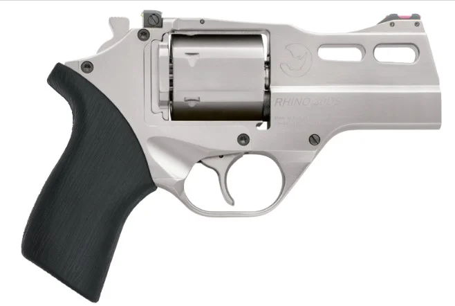 Chiappa Firearms, MFG# 340.341, UPC: 8053800948319, UOM: EA, Rhino 30DS, 10mm, 3″ Barrel, Fiber Optic Front Sight, Nickel, Walnut, 3 Moon Clips, 6-rd, CHIF, CHIFHG20, CHIFHGALL, HG20, HGALL