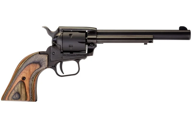 Heritage, MFG# RR22MBS6, UPC: 727962506318, UOM: Each, Rought Rider, .22LR/.22WMR, 6.5″ Barrel, Black/Satin, Camo Green Laminate Grip, 6-rd, HERI, HERIHG20, HERIHGALL, HG20, HGALL
