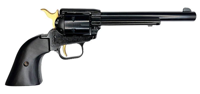 Heritage, MFG# RR22B6-GLD, UPC: 727962707074, UOM: EA, Rough Rider Rancher, 22 LR, 6.5″ Fixed Sights, Black/Gold Accents, 6-rd, HERI, HERIHG20, HERIHGALL, HG20, HGALL, Case: 5