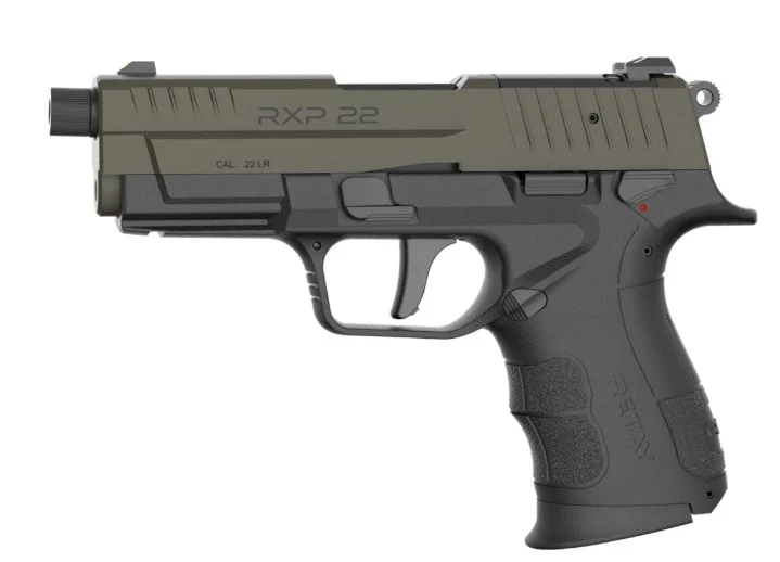 Retay USA, MFG# RXP22-BLK-ODSL-13TH, UPC: 8682205114902, UOM: EA, RPX 22, .22LR, 4″ Threaded Barrel, Optics Ready, TruGlo FO Front Sight, Black, OD Green, (2) 13-rd, RETA, RETAHG10, RETAHGALL, HG10, HGALL