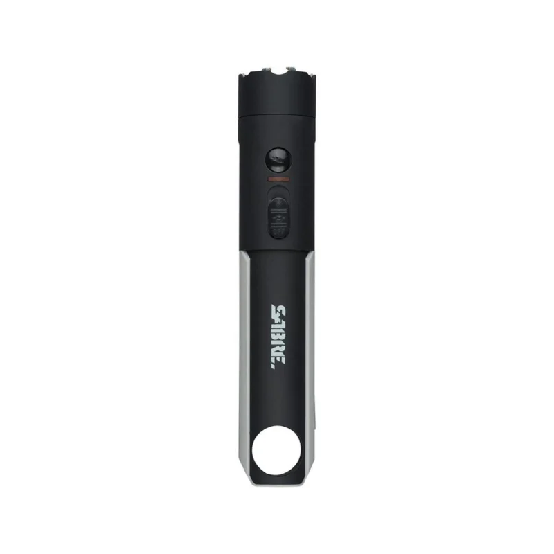 Empower yourself with the SABRE 2-in-1 Stun Gun with LED Flashlight. With a 1.75 µC charge this SABRE stun gun is powerful producing 'intolerable pain' and empowering you with extreme stopping power when you need it most. The bright 200 Lumen LED Flashlight can illuminate your path up to 150ft away. The built-in 200 Lumen LED flashlight is not just an ordinary light; it comes with three strobe modes – high low and strobe – making it a versatile tool for any environment. Whether you're navigating a dark alley walking the dog finding your way during a power outage or signaling for help this flashlight has you covered. For maximum convenience this stun gun includes a hard case for safe storage and for easy carry. Say goodbye to the hassle of replacing batteries. Our stun gun comes with a rechargeable battery and includes a charging cable ensuring that your device is always ready when you need it. The battery strength indicator keeps you informed of your device's charge level so you're never caught off guard. Feel confident using your stun gun with the battery power indicator light letting you know once it's on and its charge status. Your safety is our priority. The strength of SABRE stun guns are independently tested to ensure reliable protection when you need it most. SABRE is the #1 brand trusted by consumers worldwide for pepper spray and is a leader in developing safety programs and safety videos to maximize end users’ safety. Empower yourself with extreme stopping power when you need it most. Patent No. US D1016208 S