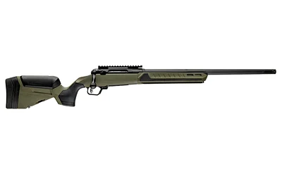 Built for serious predator hunters, this rifle pairs a Hunter Green stock with LOP and comb adjustment, interchangeable grip modules, and M-Lok panels with an integral ARCA rail for fast, stable shooting and custom fit in the field. The action is black Cerakoted with a black jeweled bolt body and threaded bolt handle, while a user-adjustable AccuTrigger and one-piece 0 MOA rail deliver crisp, repeatable trigger breaks and optic zeroing for long-range shots. Carbon steel barrel in a medium contour with straight fluting and a threaded muzzle; the beavertail forend adds an ARCA rail plus M-Lok slots for accessories and improved shooting platforms. Feeding is reliable via AICS magazines, and every caliber is offered in left-hand models – a compact, configurable platform engineered for precision, versatility, and fast target acquisition.