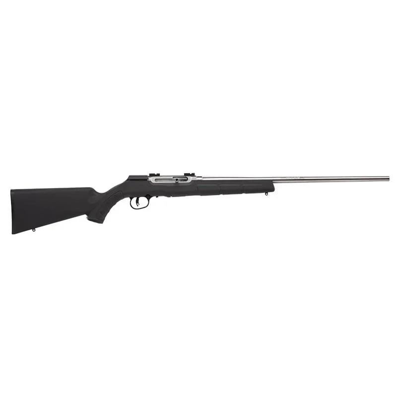 Accuracy reliability and durability all come together in the A22 FSS from Savage®. The semi-automatic 22 LR upgrades the original A22 platform with a 22-inch stainless steel sporter barrel as well as two-piece bases. It features a gray synthetic stock user-adjustable AccuTrigger and reliable straight blowback action.